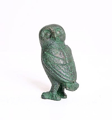 Greek Owl Miniature Statue Green Bronze Finish GRE09